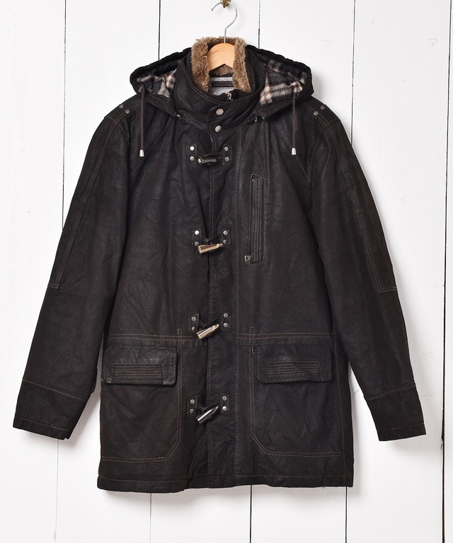 トグルボタン フード付き レザーコート