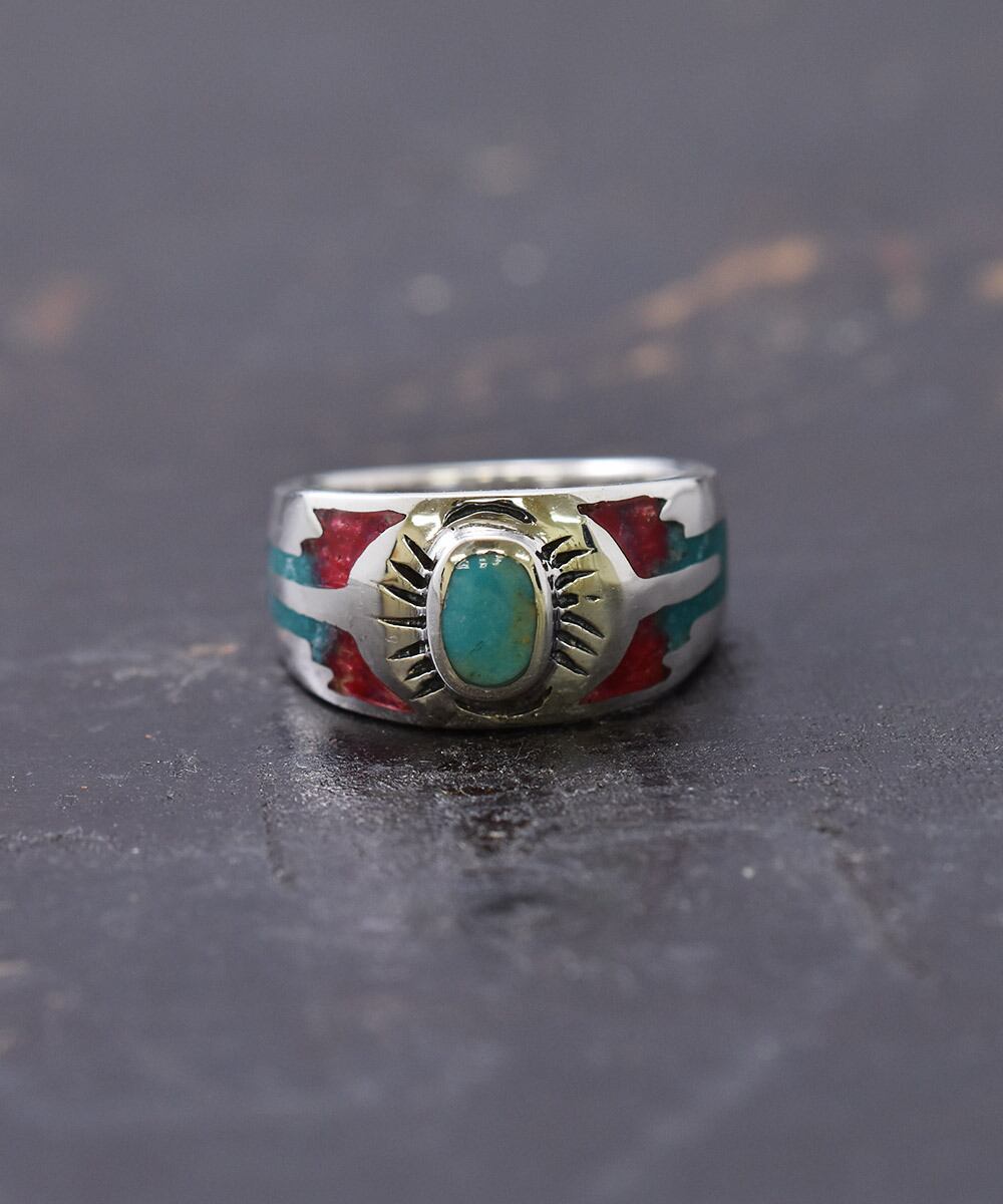 シルバーリング ネイティブ|Silver Ring Turquoise×Red Native Pattern