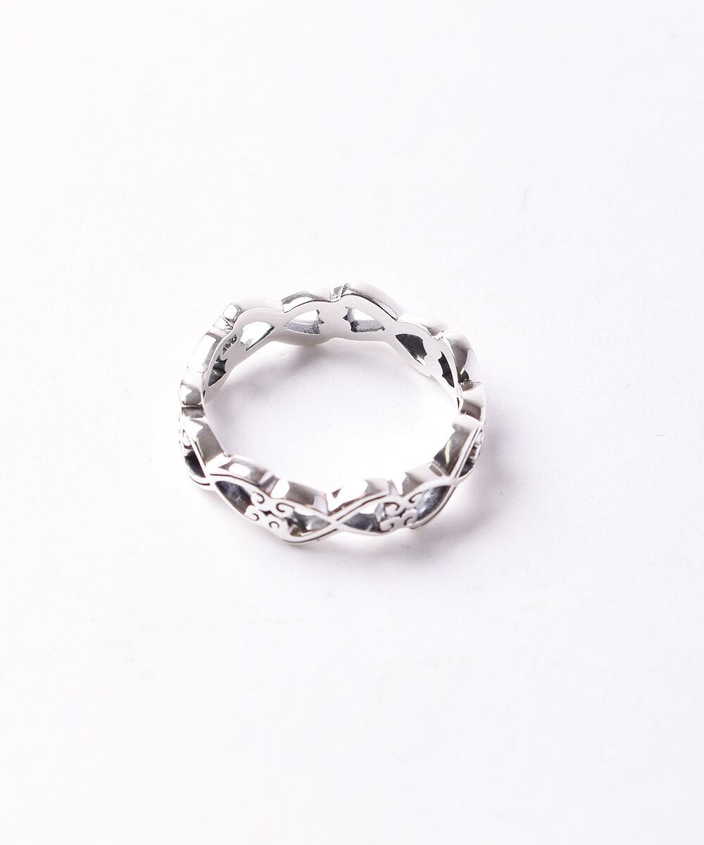 連続する模様が透かし彫りされたリング。