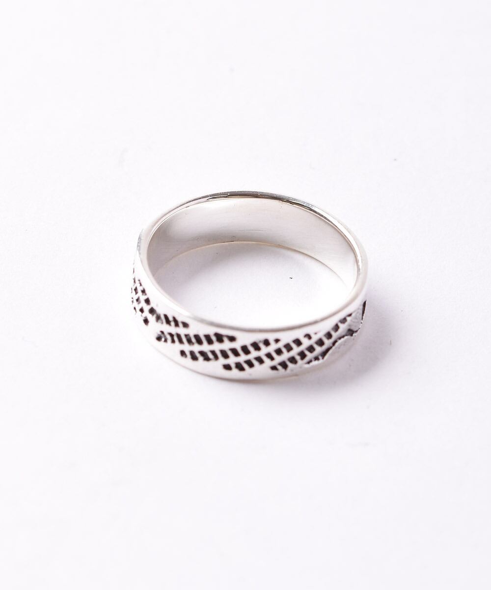 ネイティブアメリカンのシンボリックな柄が施された甲丸リング。
