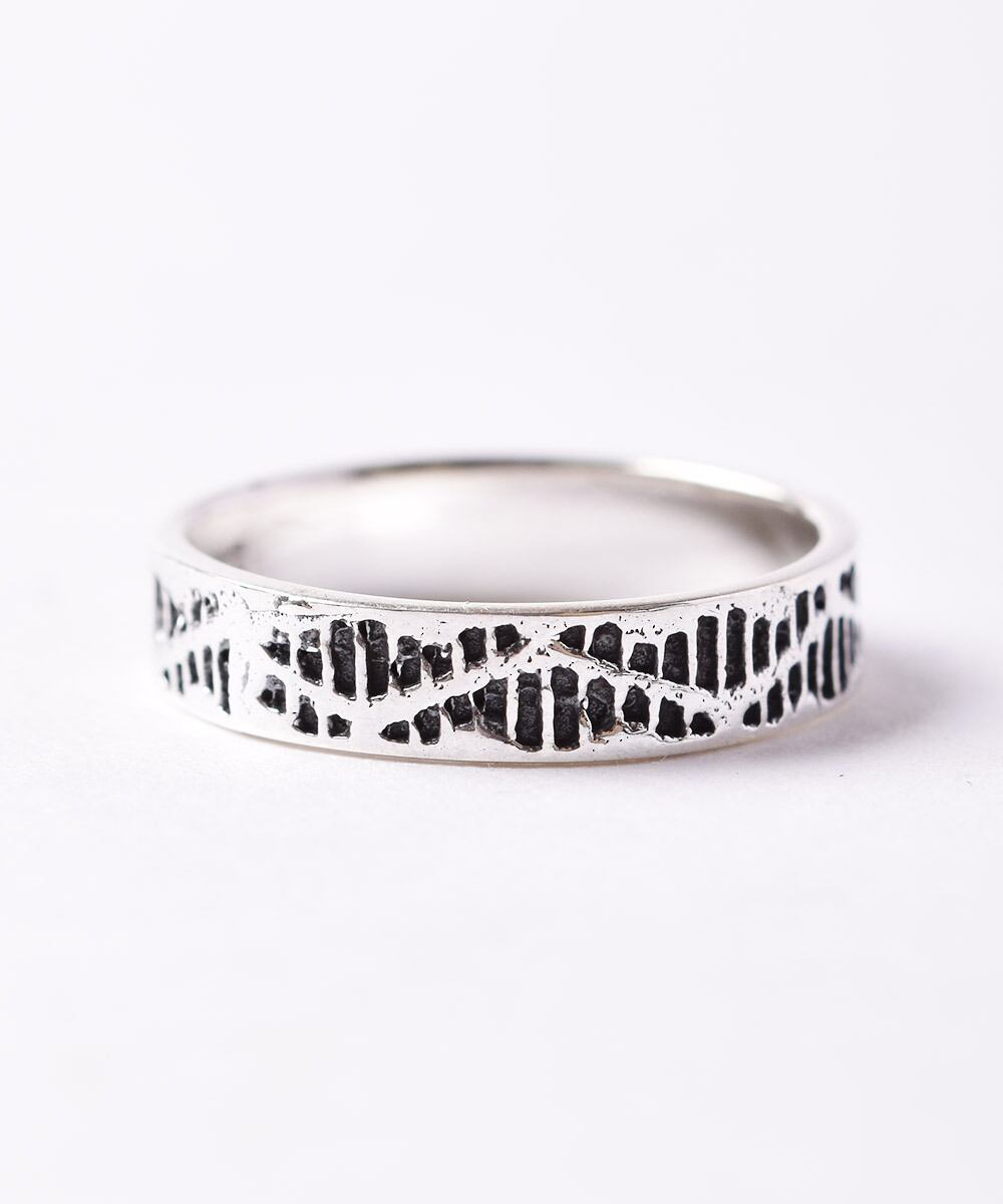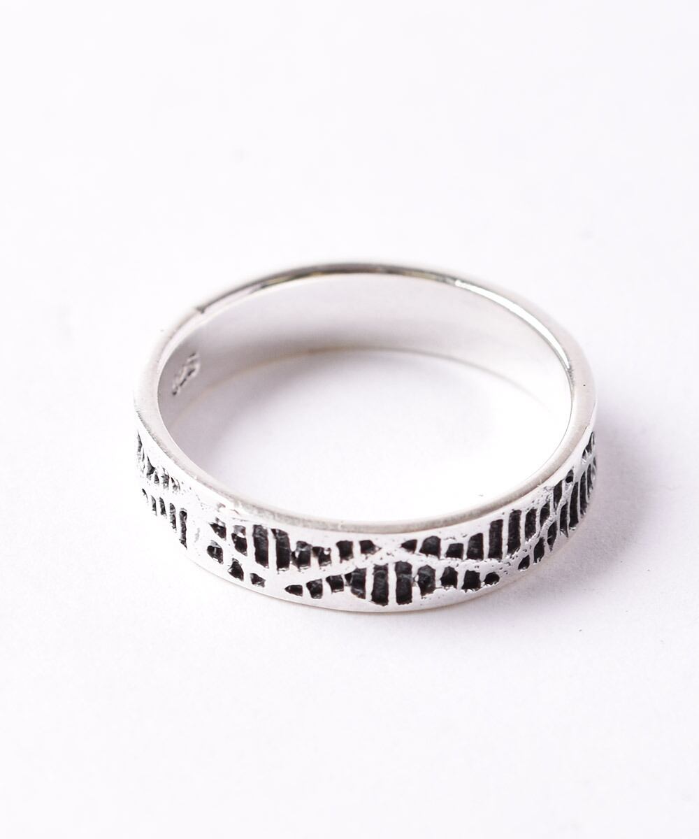 ネイティブアメリカンのシンボリックな柄が施された甲丸リング。