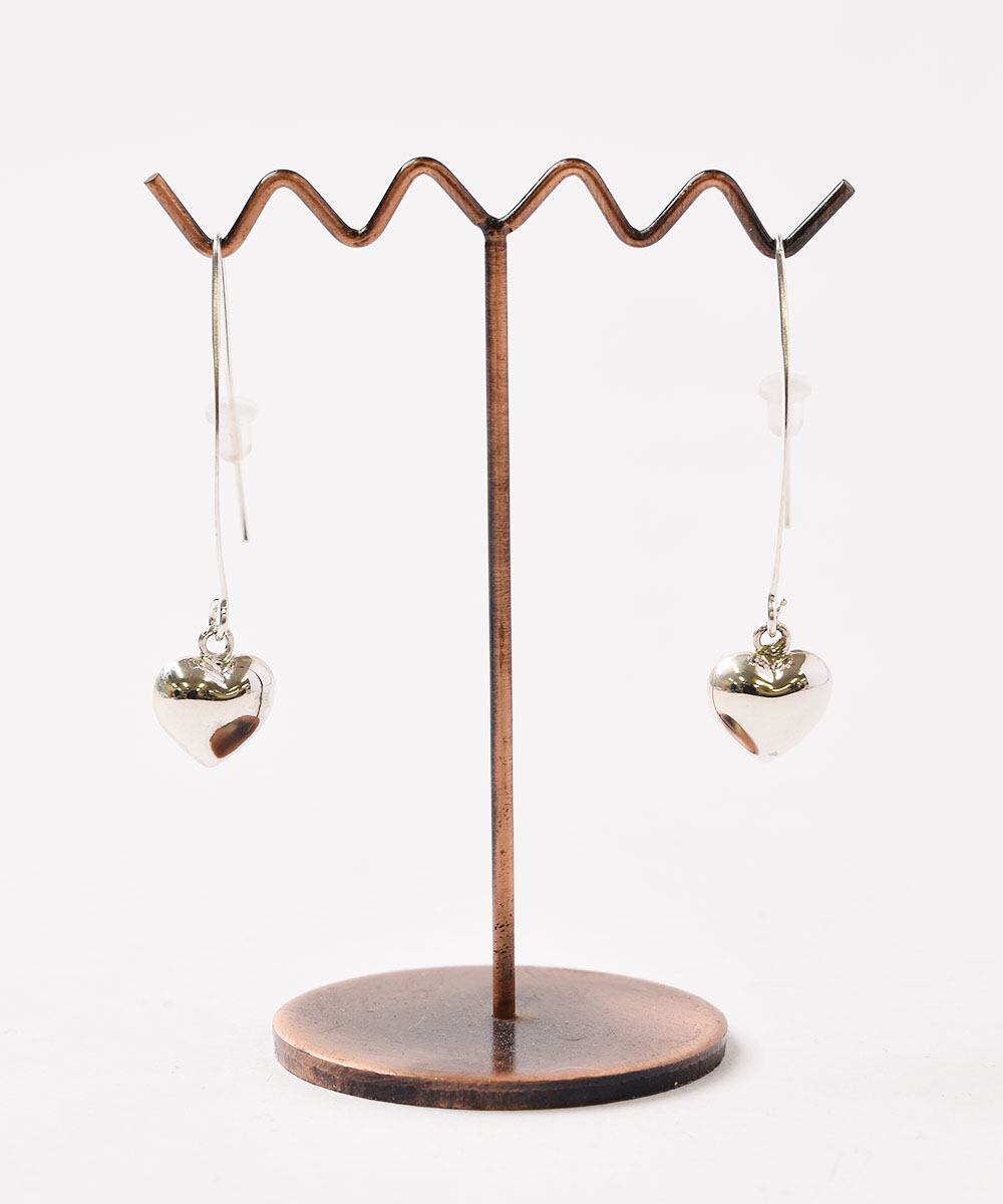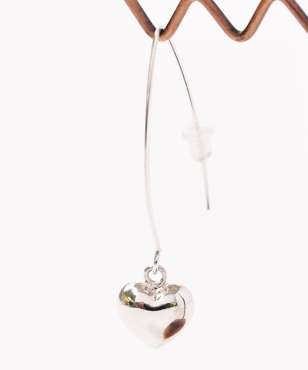 ロングフックのハートモチーフピアス。動くたびに揺れるハートにグッとくる一点です。