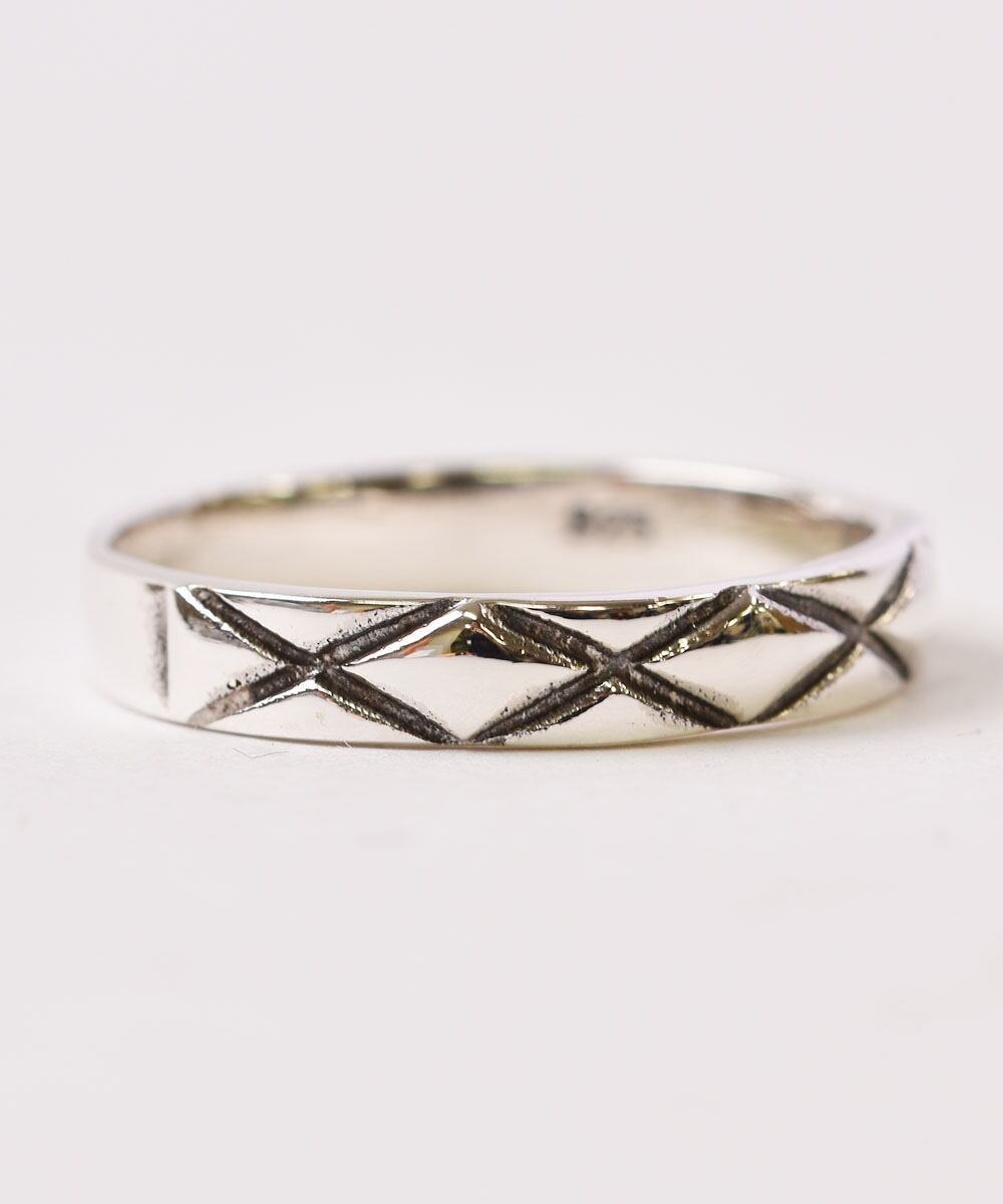 菱形の柄が施されたリング。細身なので、重ね付けにもオススメです。