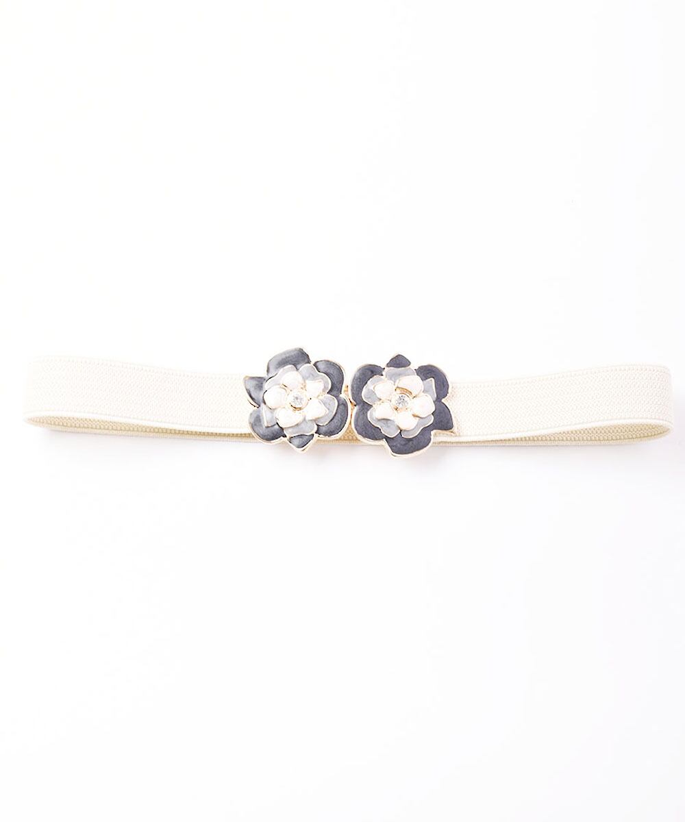 【2色展開】3カラーフラワーモチーフベルト アイボリー