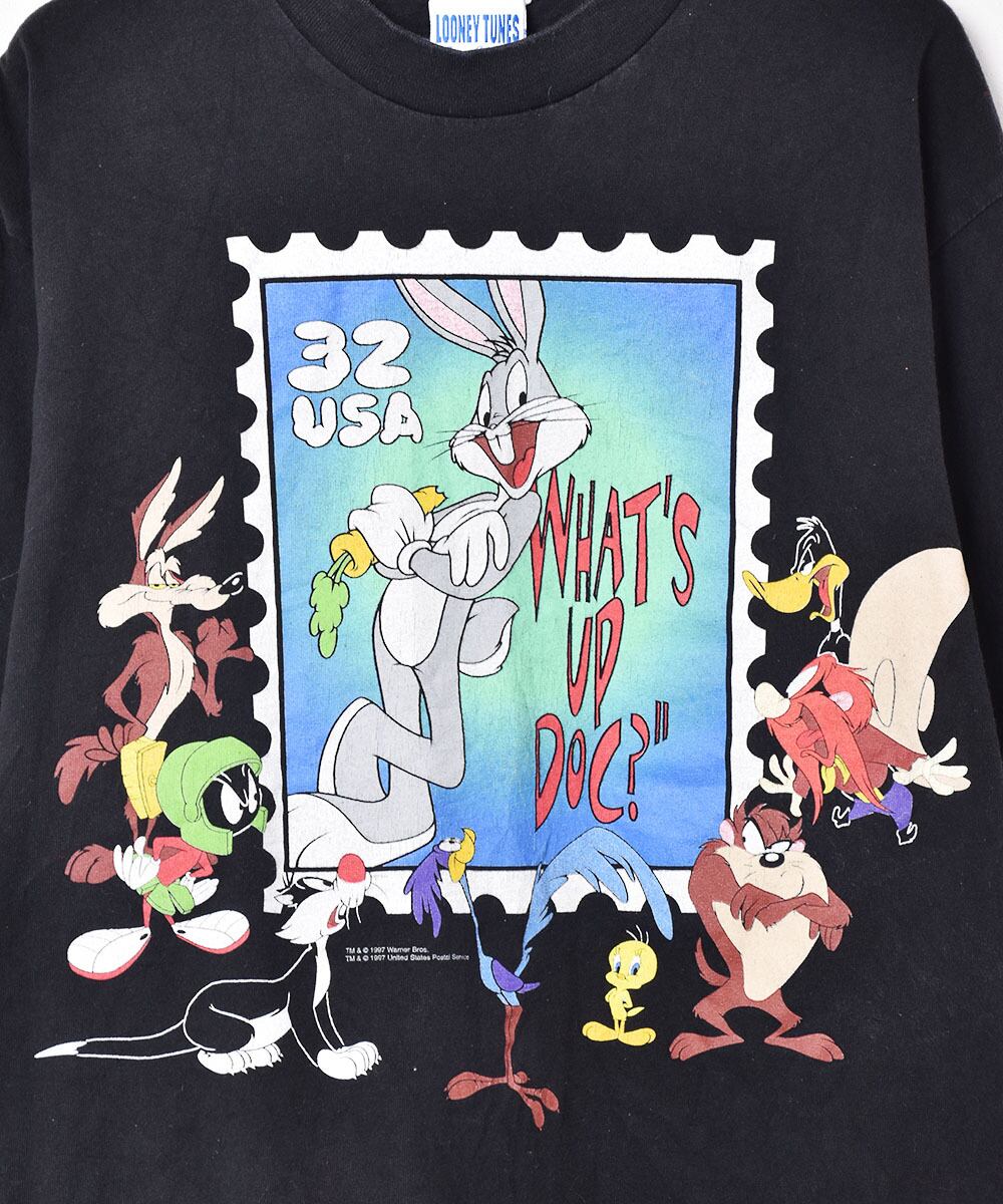 ルーニー・テューンズのキャラクターが大集合した賑やかなTシャツ。肌触りのよいオールコットン生地です。