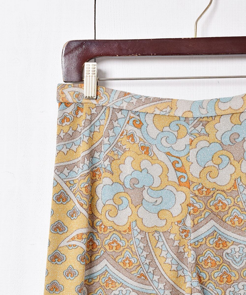 70's フランス製 総柄 ラメ ワイドパンツ W30
