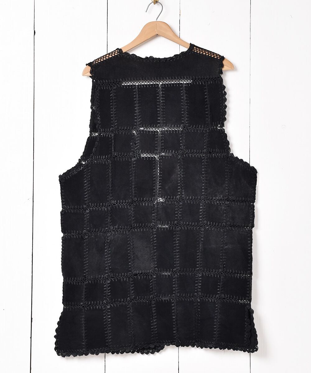 パッチワーク スエード ロングベスト