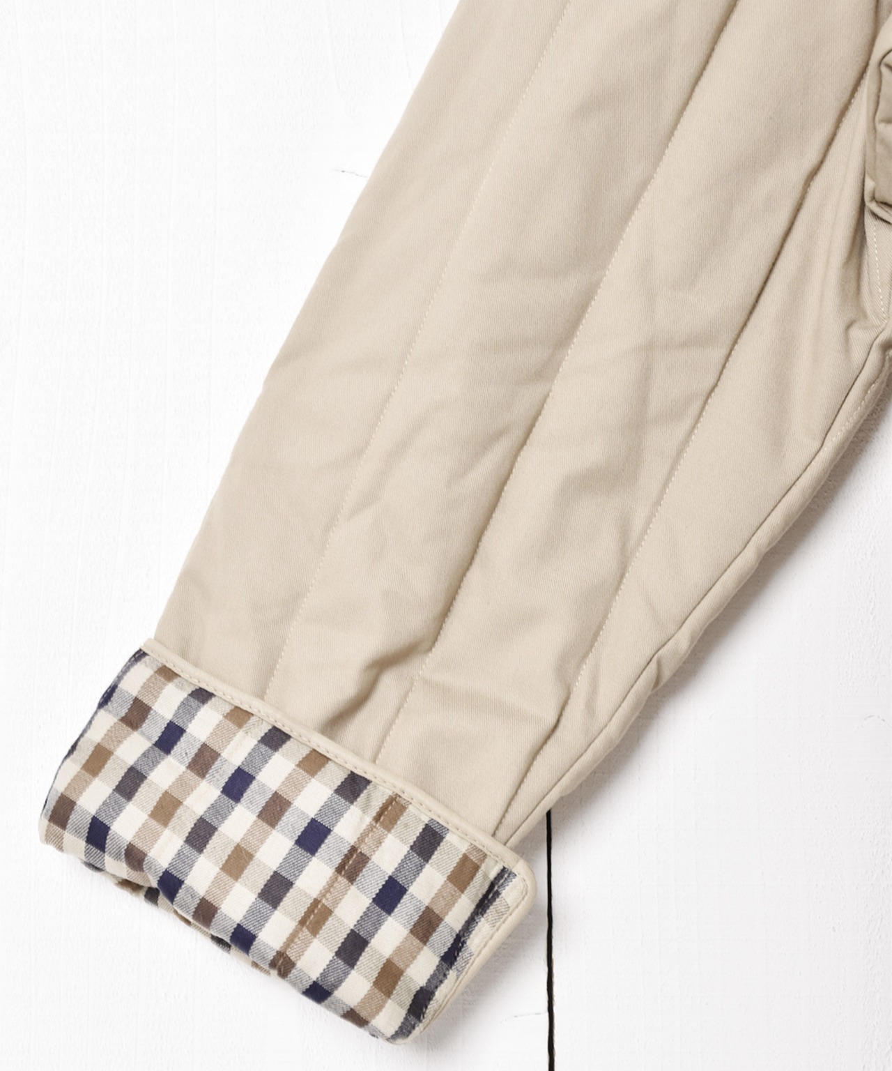 アクアスキュータムらしいガンクラブチェックが品を添える、キルティングジャケット。袖の取り外しが可能で、ベストとジャケットの2wayを楽しめるアイテム。重量感もなく、暖かな着心地が魅力的な一点です。