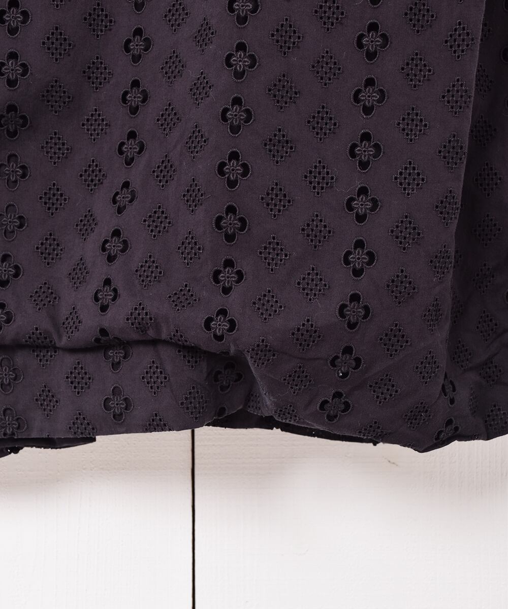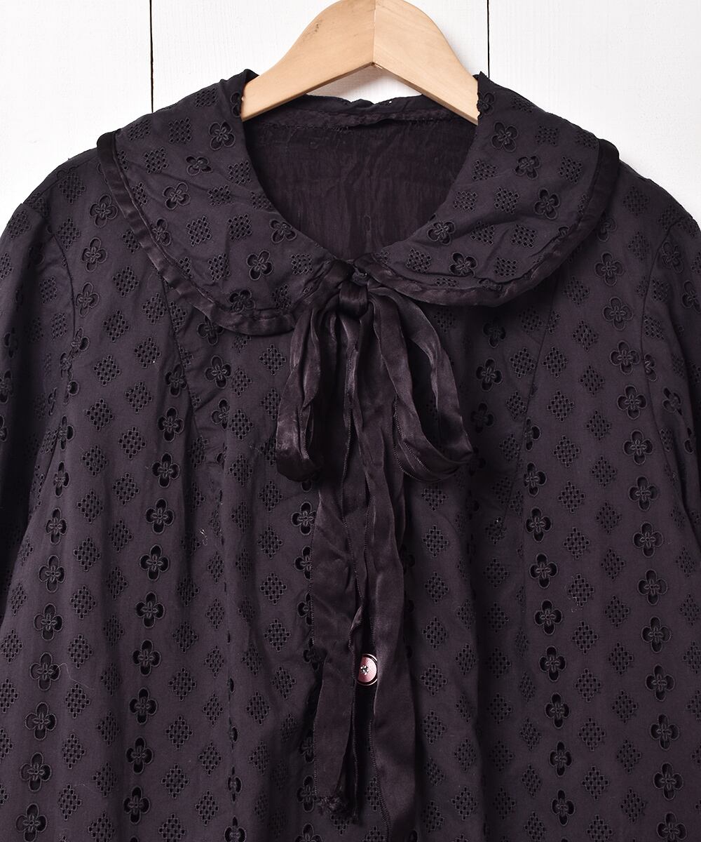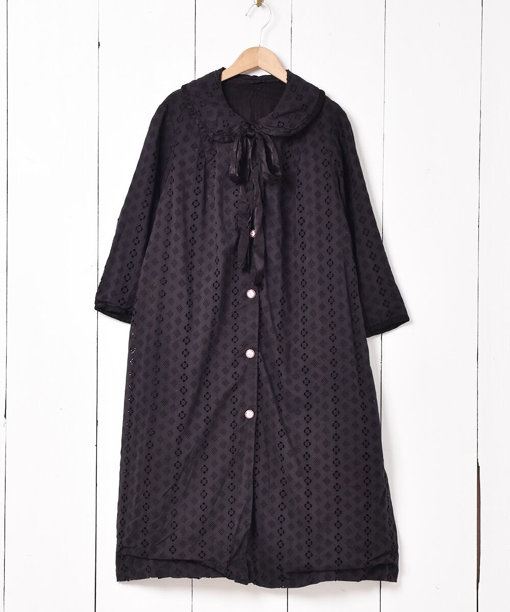 50's 後染め カットワーク フロントボタン 長袖ワンピース