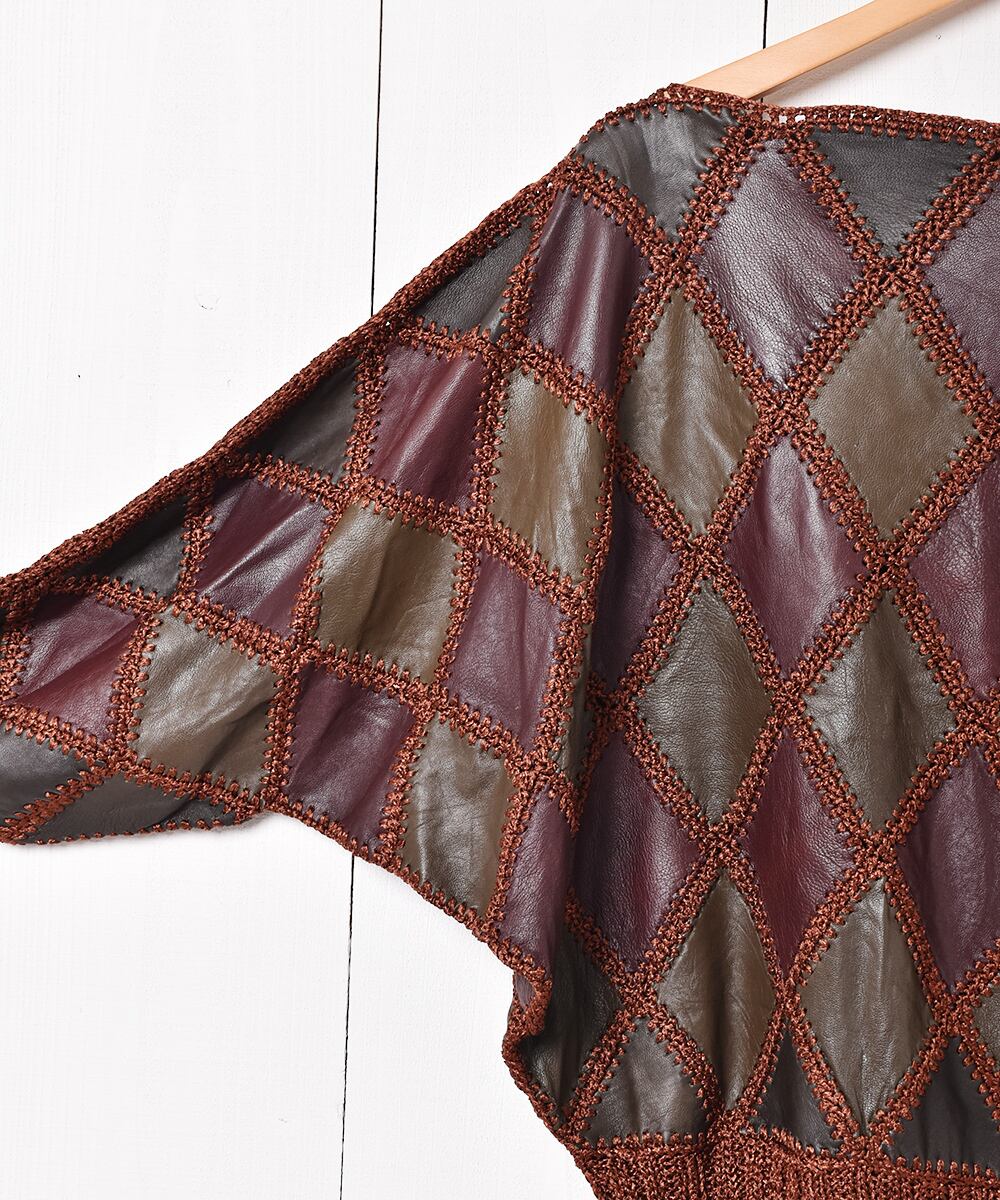 存在感抜群のレザークラフトが魅力のトップス。ツヤのある、柔らかなレザーです。