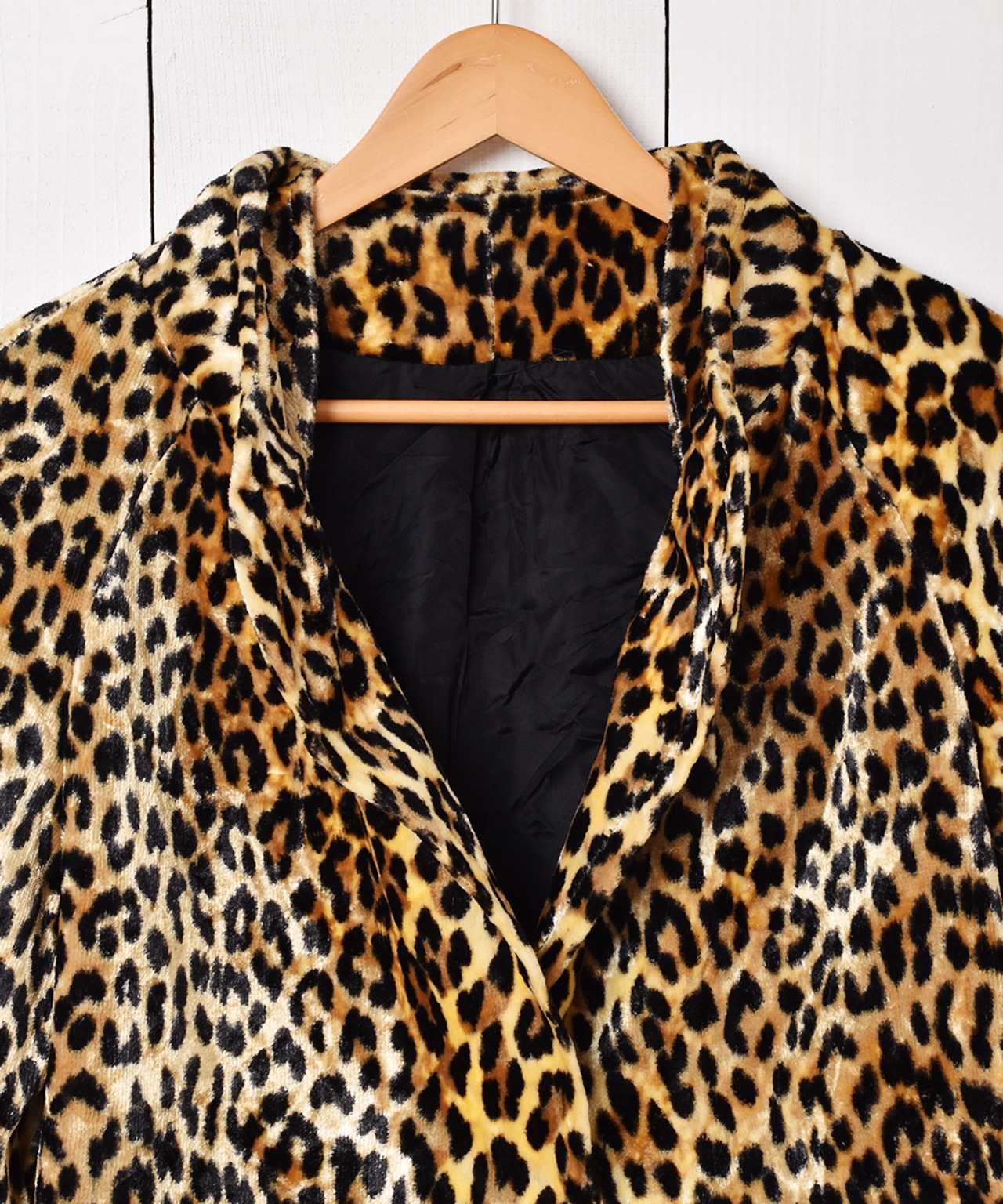 着やすい丈感が普段使いもしやすい、レオパード柄ファージャケット。裏地付きでしっかりとした生地感です。