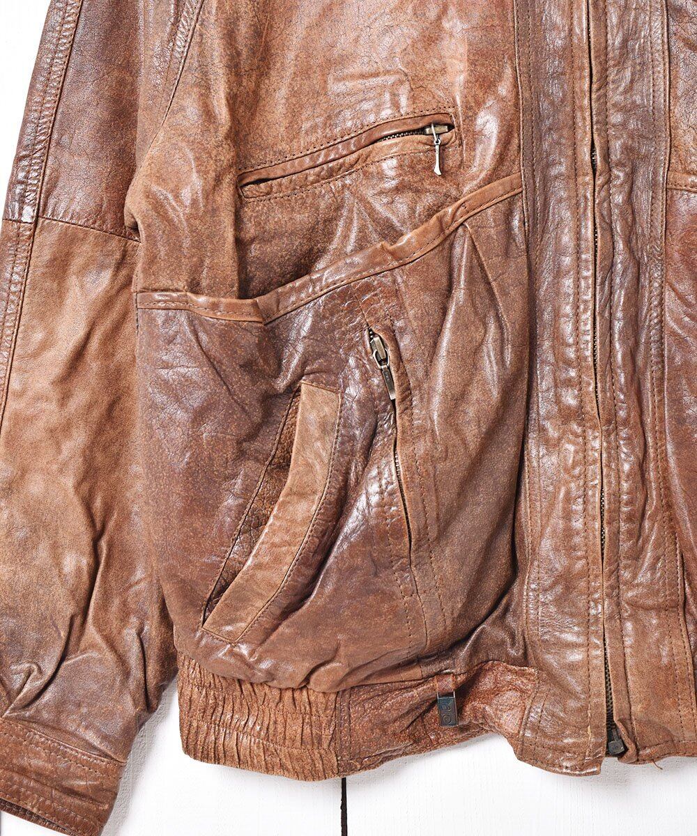 色ムラやくたっと感など、レザーの風合いを存分に楽しめるジャケット。内ポケットも合わせて11個のポケットを備え、裏地も個性的なこだわりの一着。程よく着こまれた柔らかいレザー生地です。