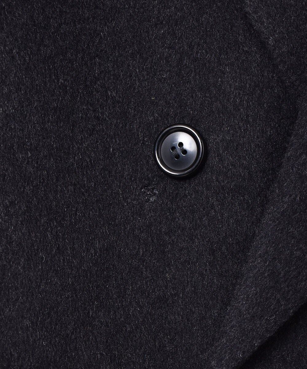 フォーマルな雰囲気と、コーディネートしやすいチャコールグレーが魅力的な一着。カシミア混ウール素材で、防寒性もばっちり◎。裏地付きで、しっかりと厚手の生地感です。