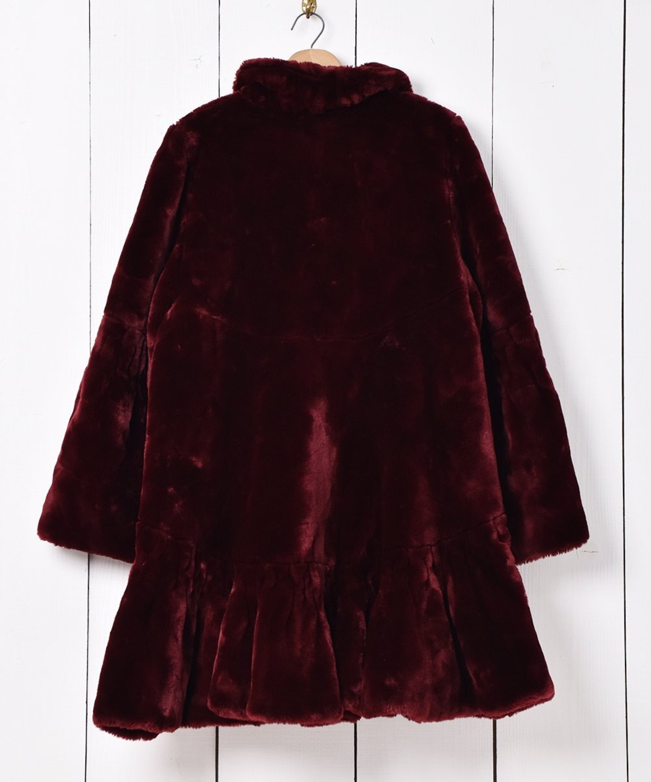 ペプラムデザインが、エレガントな雰囲気を引き立てる一着。肌触りのよい、ふわふわのファーが魅力。柄裏地付きで、しっかりと重みを感じられる一着です。