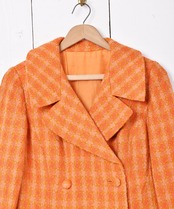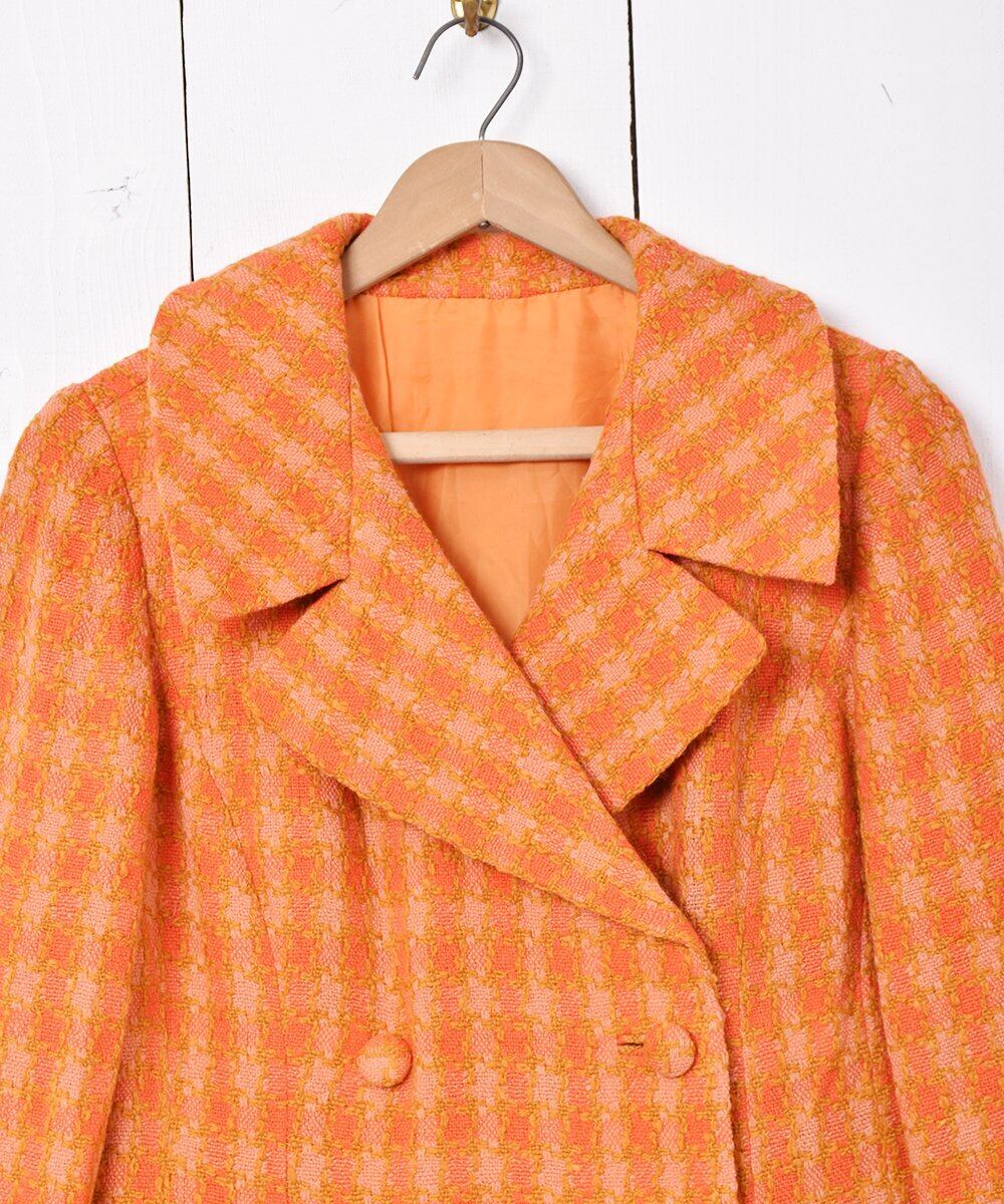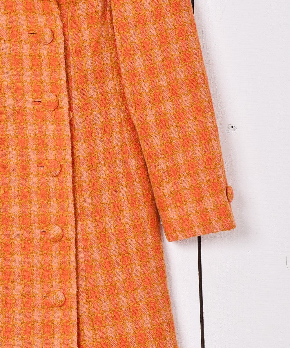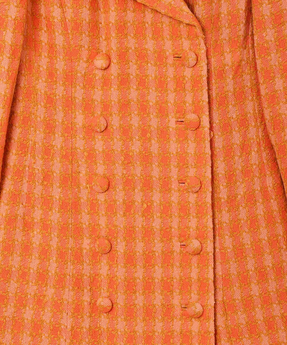 鮮やかなオレンジが目を惹く、ダブルコート。主役級の華やかな一着。春先まで活躍する、からっと軽い生地感です。