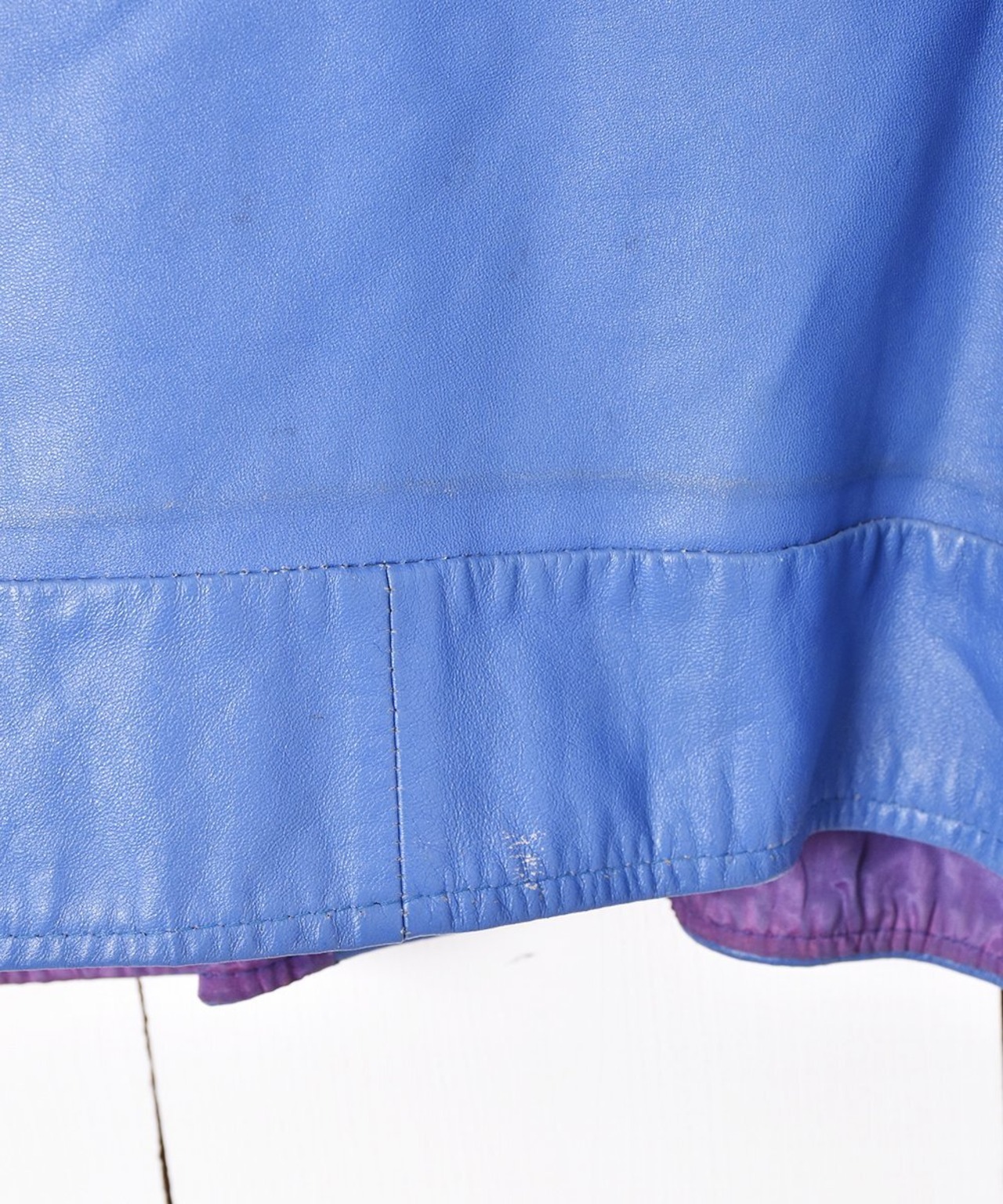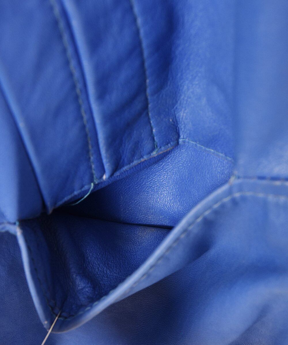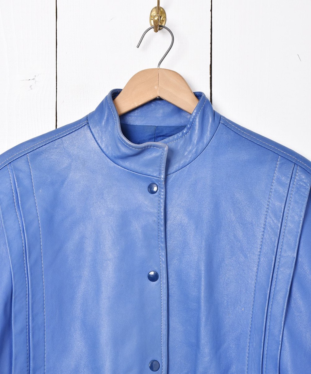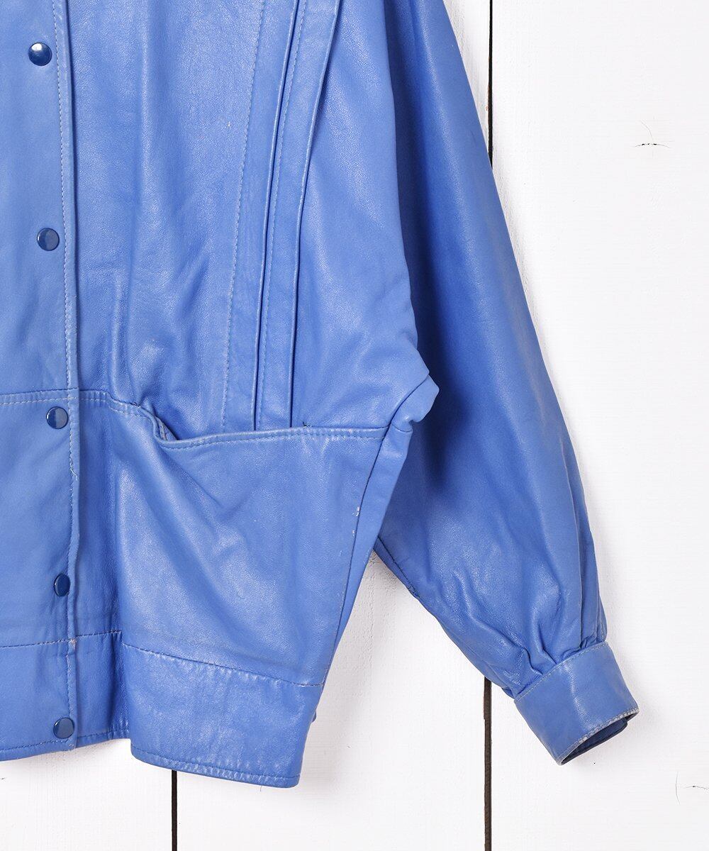 カラーが目を惹く、ドルマンシルエットレザージャケット。比較的薄手の生地感で、軽い着心地の一着です。