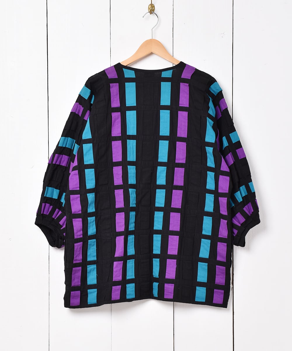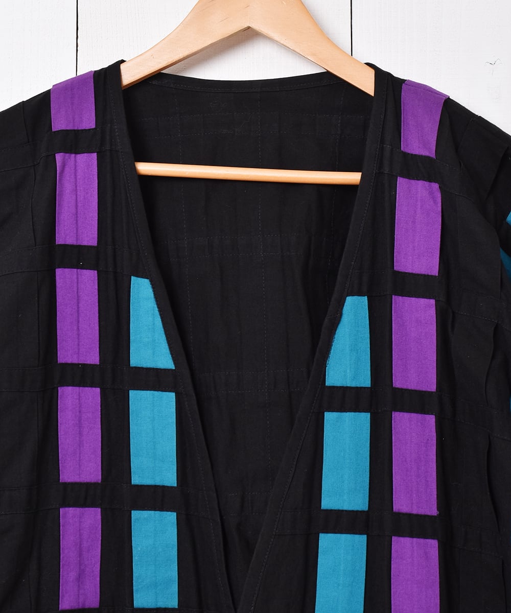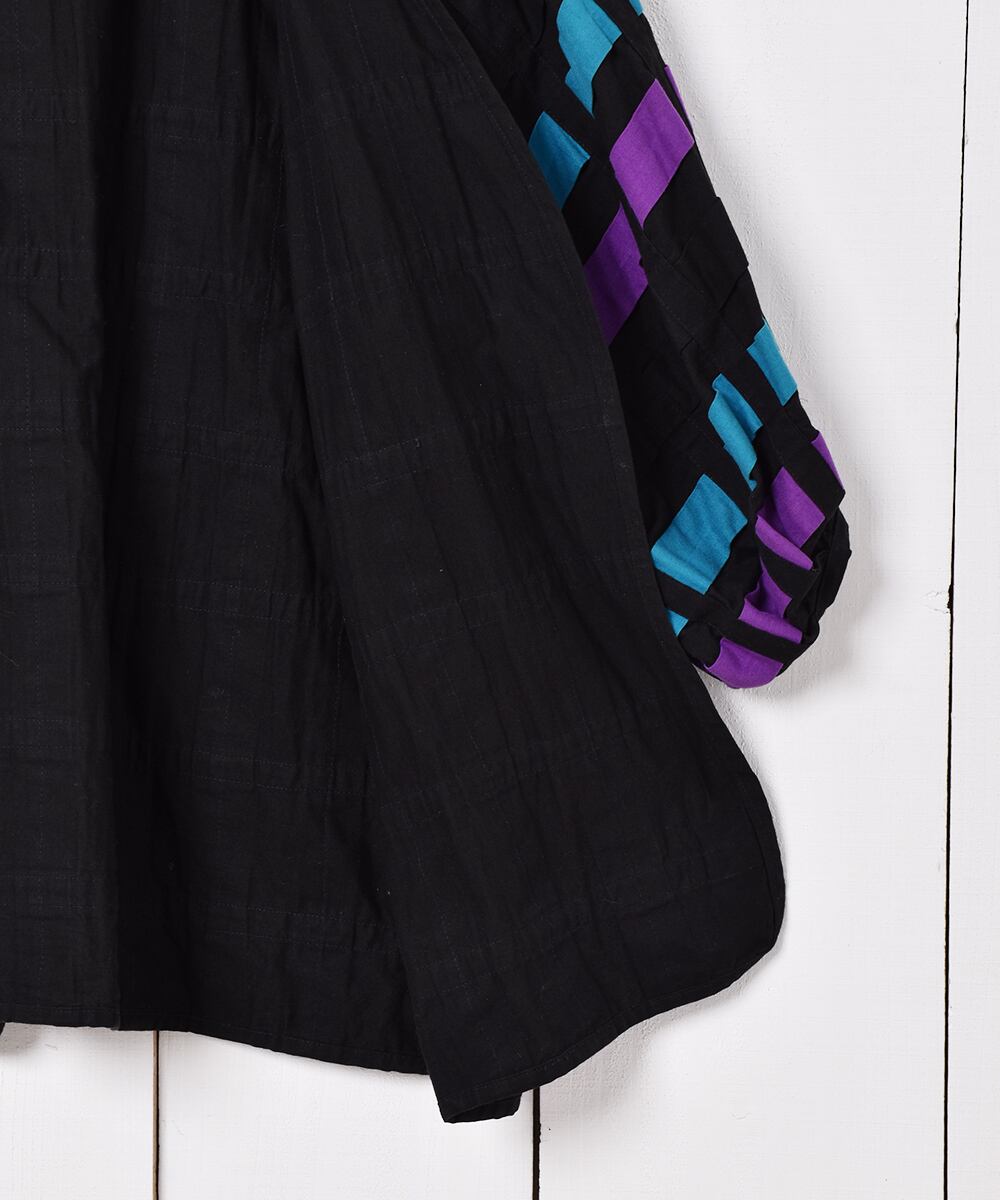 2色のテープが立体感を演出してくれるはっぴのようなデザインのジャケット。オールコットン素材でハリのある生地感です。