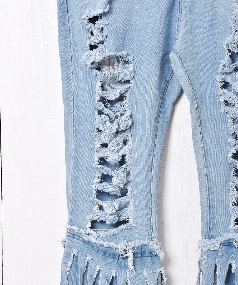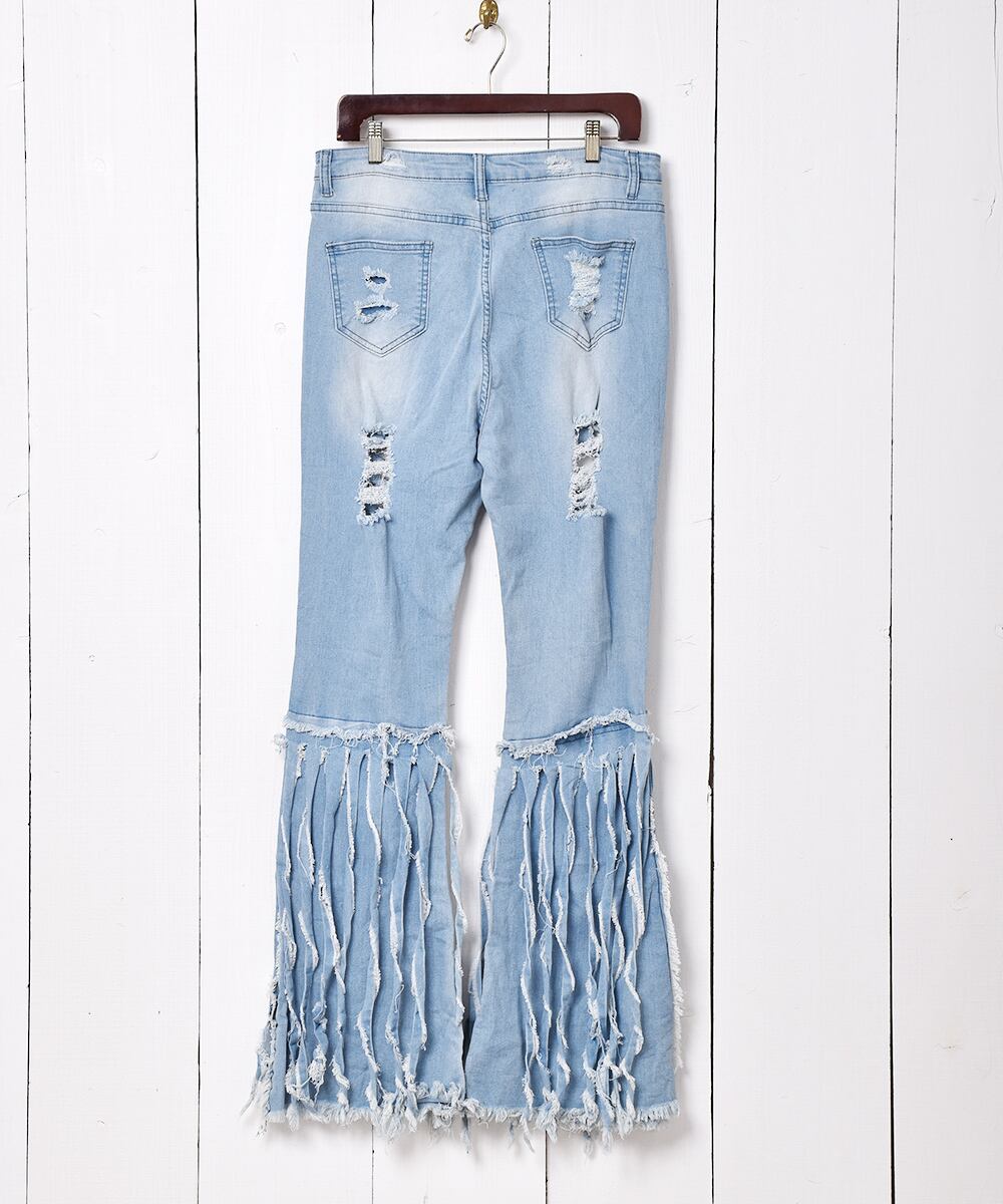 フリンジデザイン フレア デニムパンツ