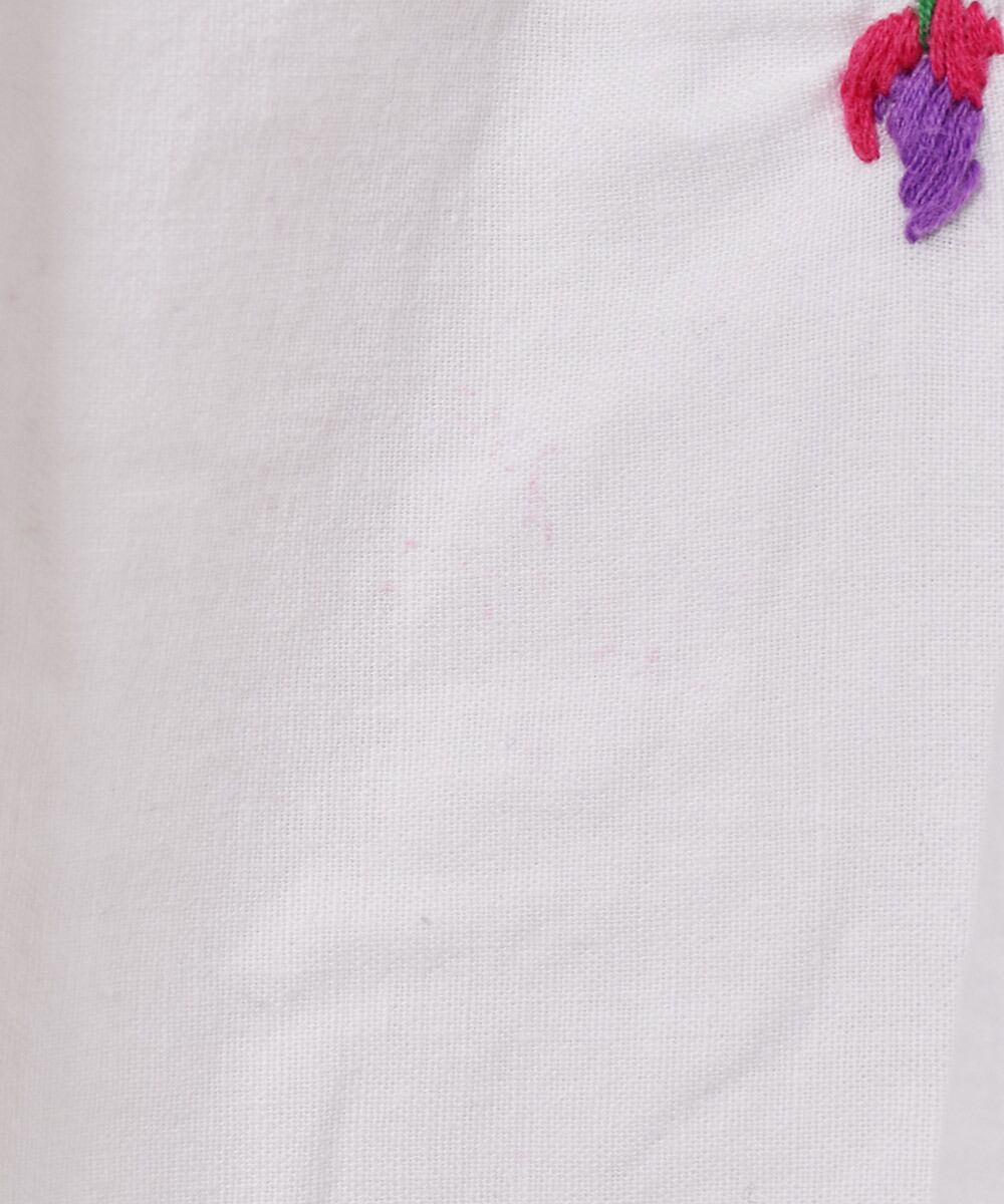 前身頃中央、正面の右脇、後ろの裾にヨゴレ、襟ぐりと刺繍部分に所々ホツレがあります。