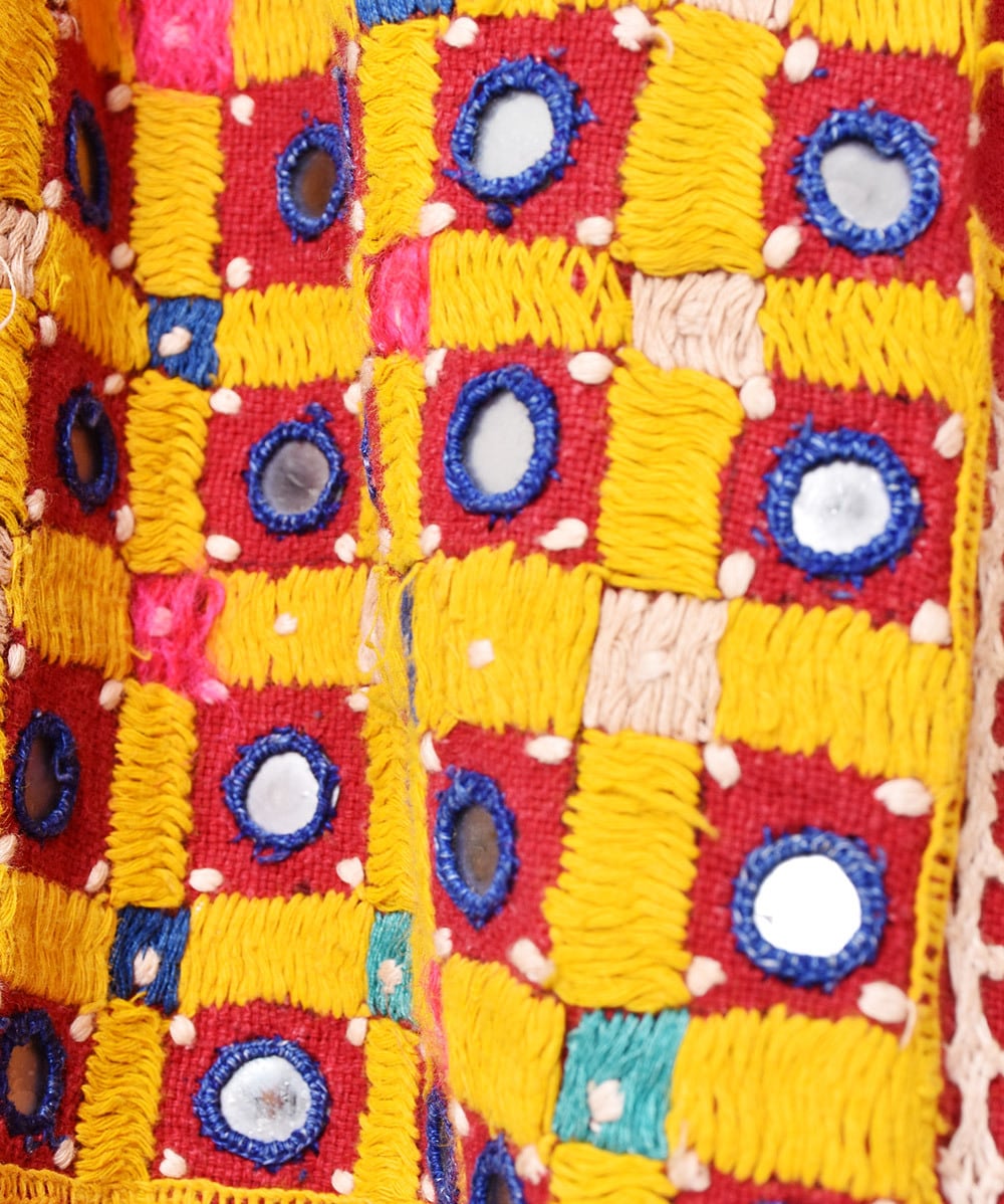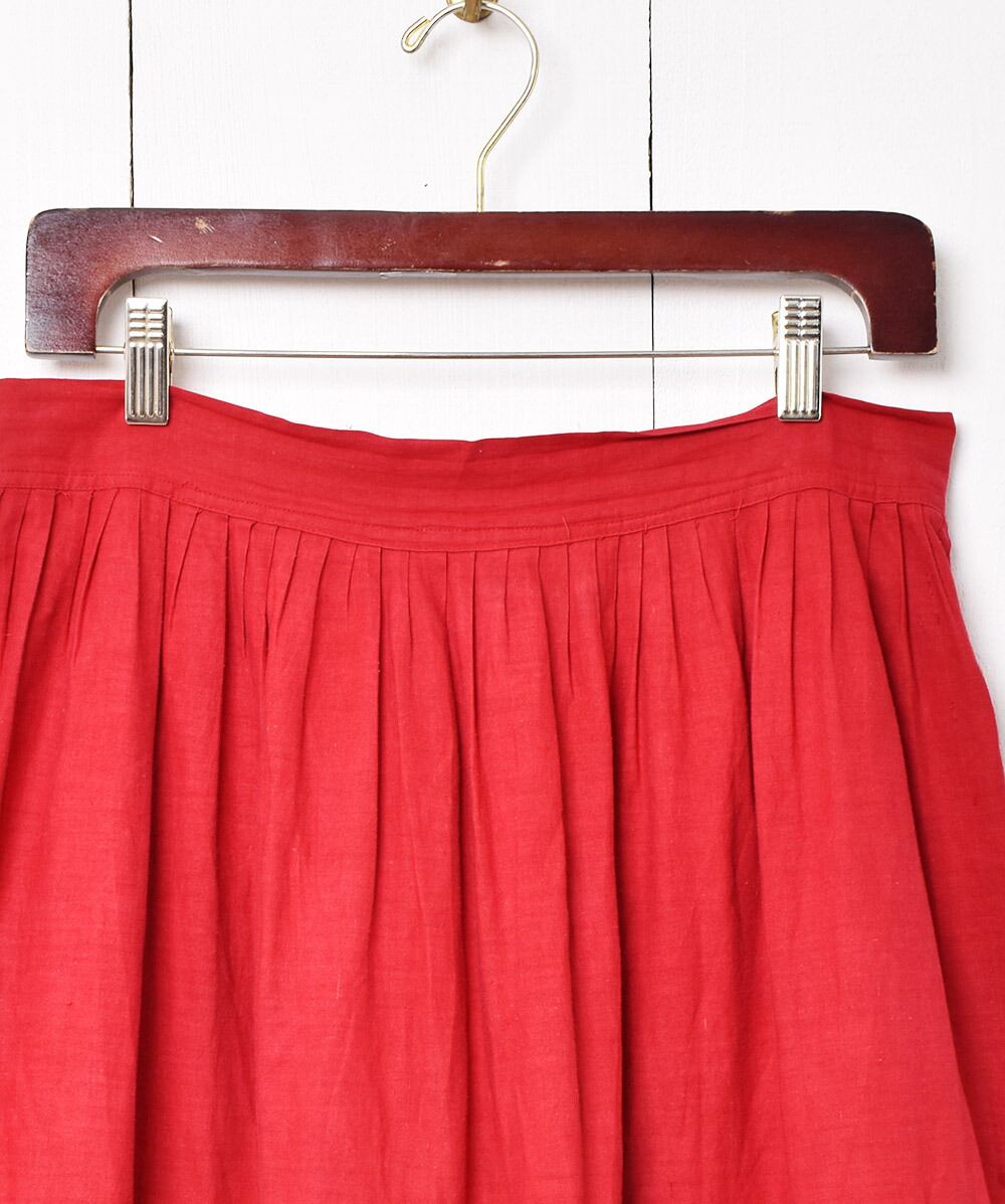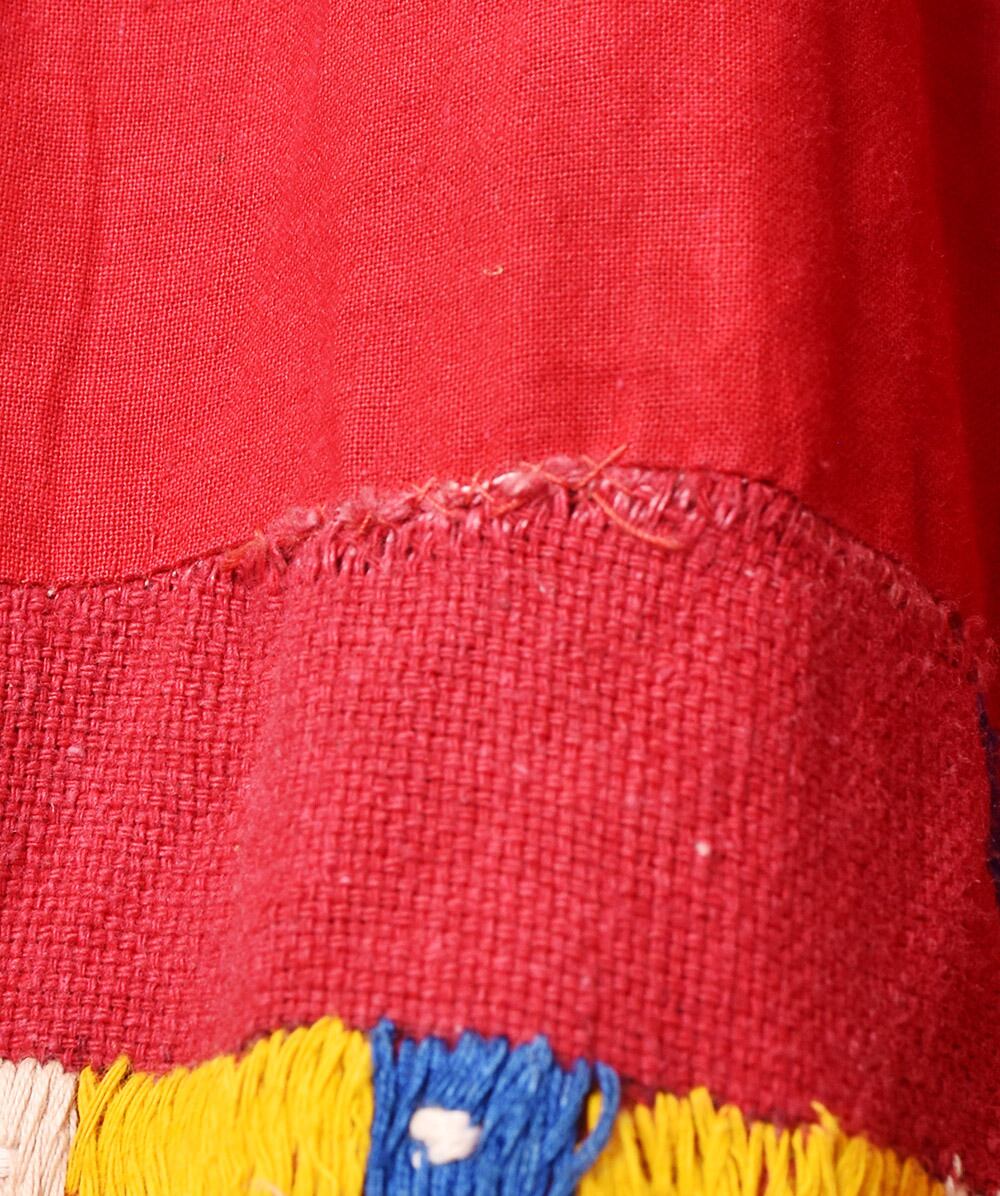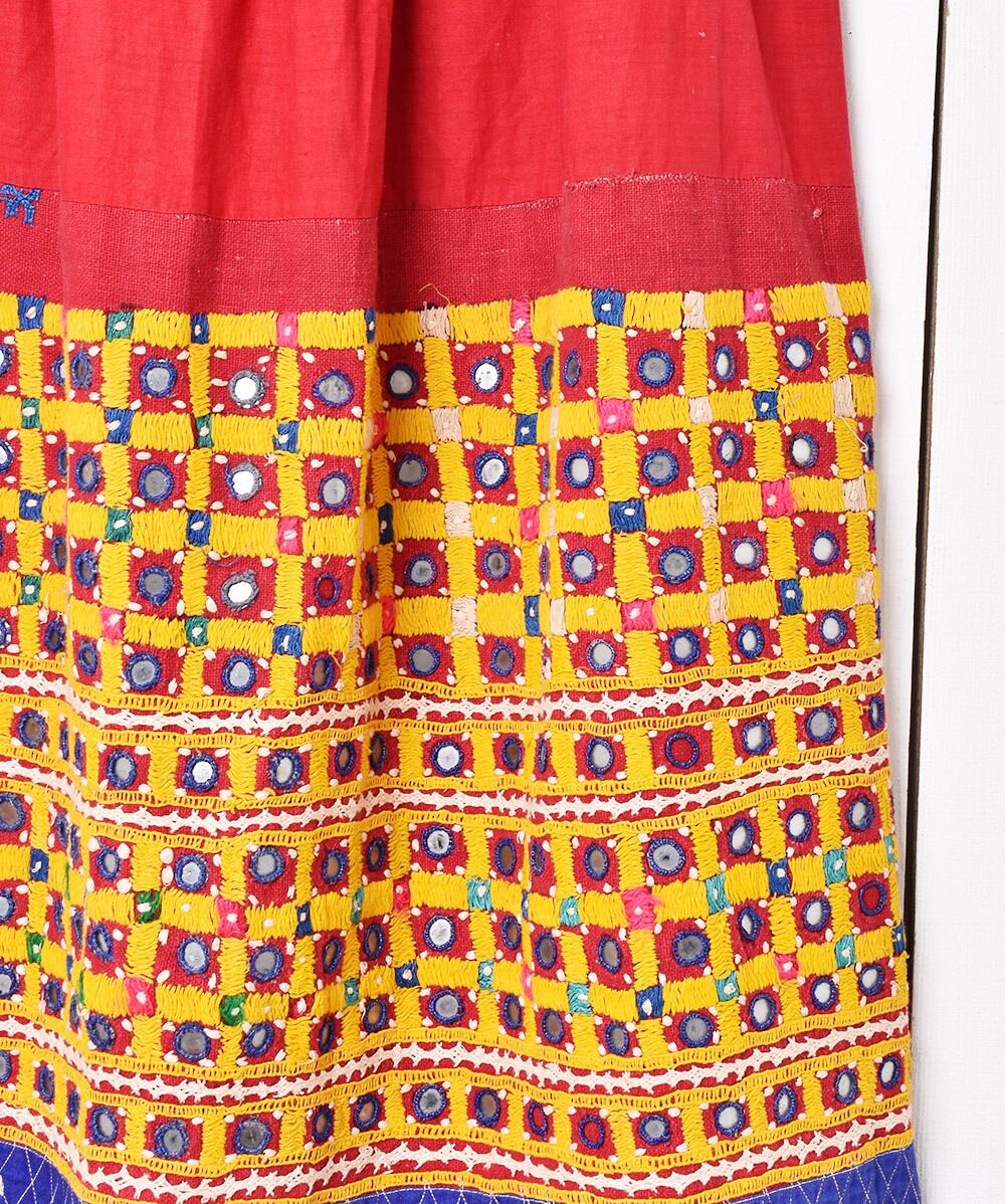民族調の刺繍がポイントのヴィンテージスカート。 赤の布地に負けないくらい、エネルギッシュで煌びやかなミラーワークが目を惹きます。裏地はありませんが、重みのある一着です。