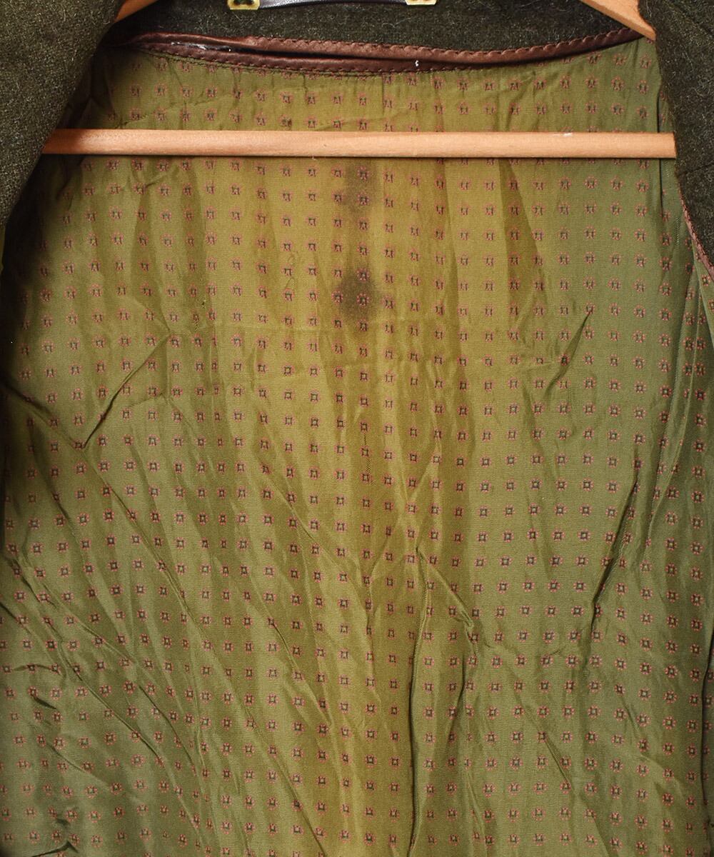 前身頃裾、裏地の背中辺り、裾などにヨゴレがあり、全体的に強いシワがあります。