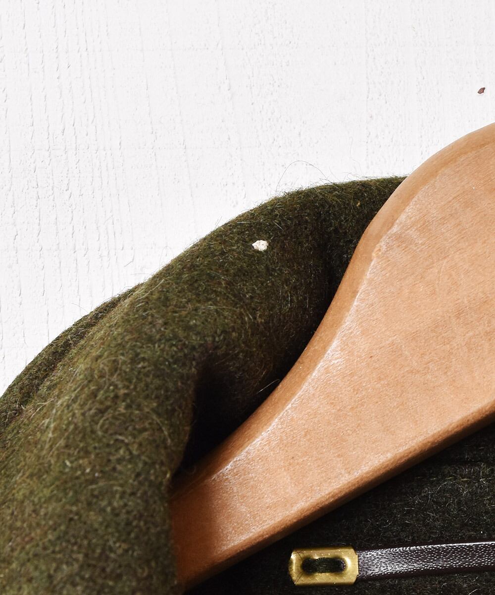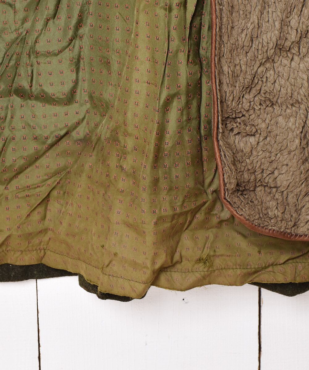 シックな深緑色が魅力的なウールコート。取り外し可能が可能なボア生地のライナー付きで、防寒性も抜群な一着です。